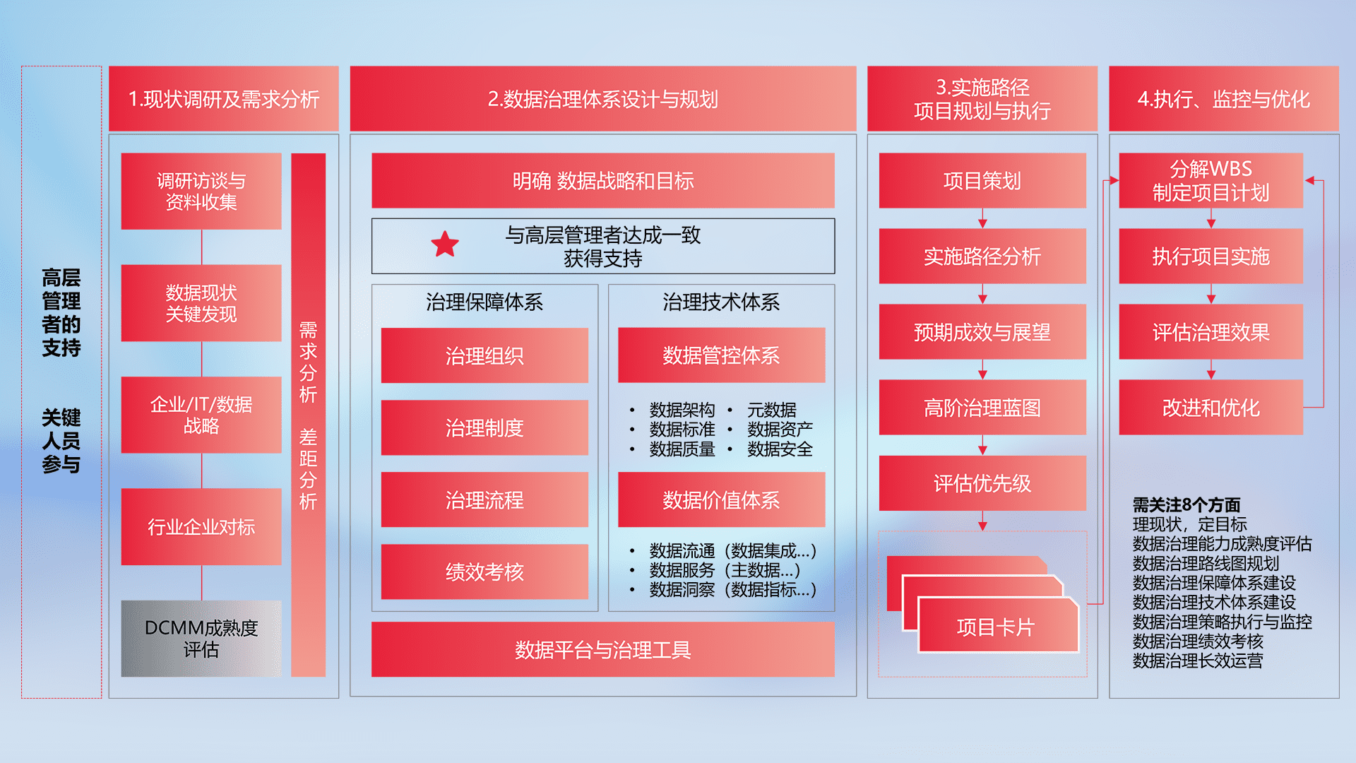 制定并执行统一的数据标准,,,,规范数据定义和格式,,,,消除冗余和不一致性,,,实现跨部门和跨系统的数据一致性,,为企业提供标准化的数据基础。。。。